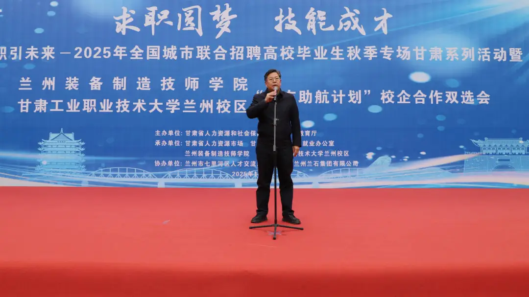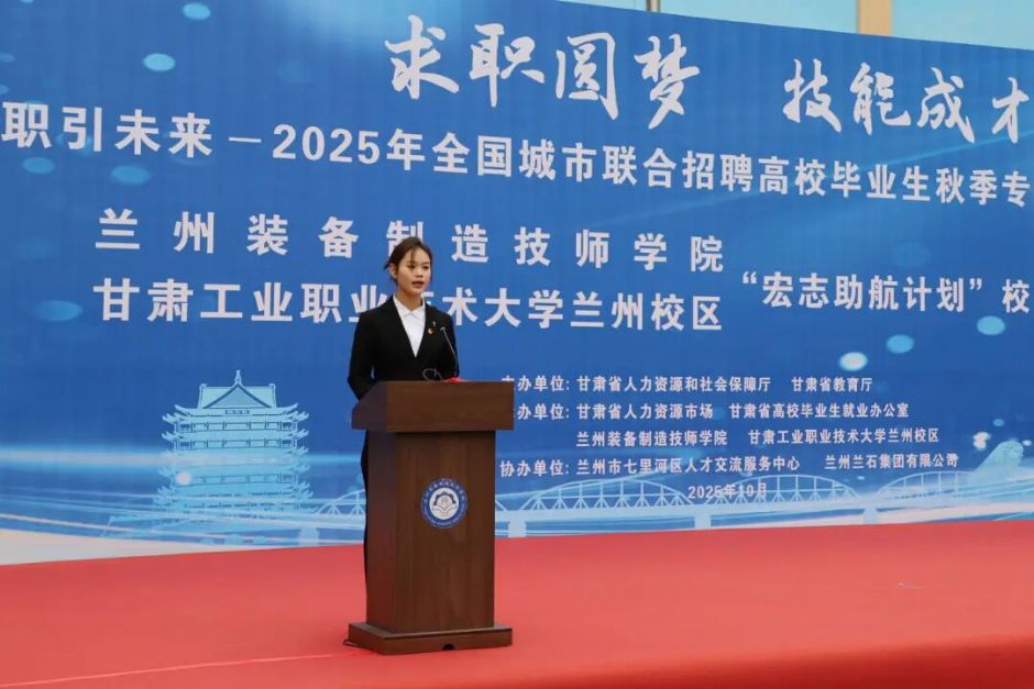 为深入贯彻落实习近平总书记视察甘肃重要讲话和指示精神,认真落实党中央国务院和省委省政府关于做好职业院校毕业生等重点群体就业工作的决策部署,10月22日,学院成功举办了2025年全国城市联合招聘高校毕业生秋季专场甘肃系列活动暨兰州装备制造技师学院、甘肃工业职业技术大学兰州校区“宏志助航计划”秋季校企合作双选会。