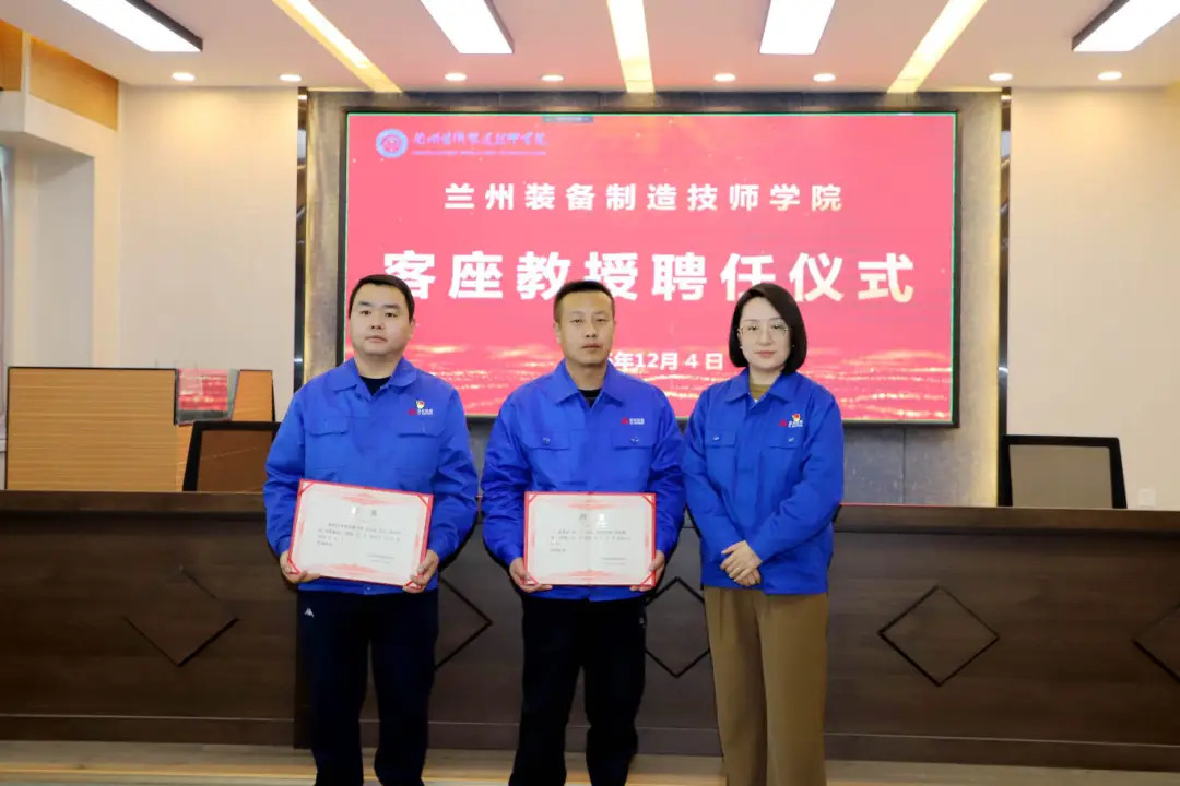仪式上,学院正式聘请兰石集团冷作工首席操作师朱家彪大师和车工特级操作师刘云大师为客座教授。两位大师均为技能领军人才,在各自领域深耕多年,技艺精湛、成果丰硕,荣获国务院政府特殊津贴、甘肃省劳动模范、技术能手等诸多荣誉。