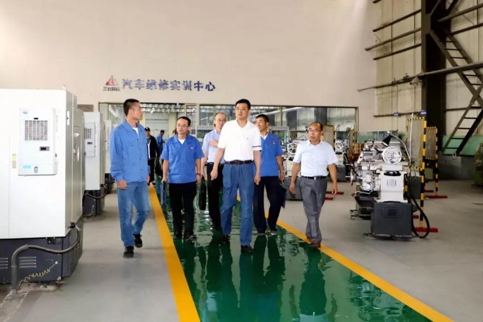 冯西平一行查看了学院汽车维修、数控加工、冷作焊接等实训中心和省级技能大师工作室等。他对学院工作给予充分肯定,指出,要注重运用信息化、智能化的手段,创新高技能人才培养模式,深化培训基地与企业开展高技能人才培训的合作。