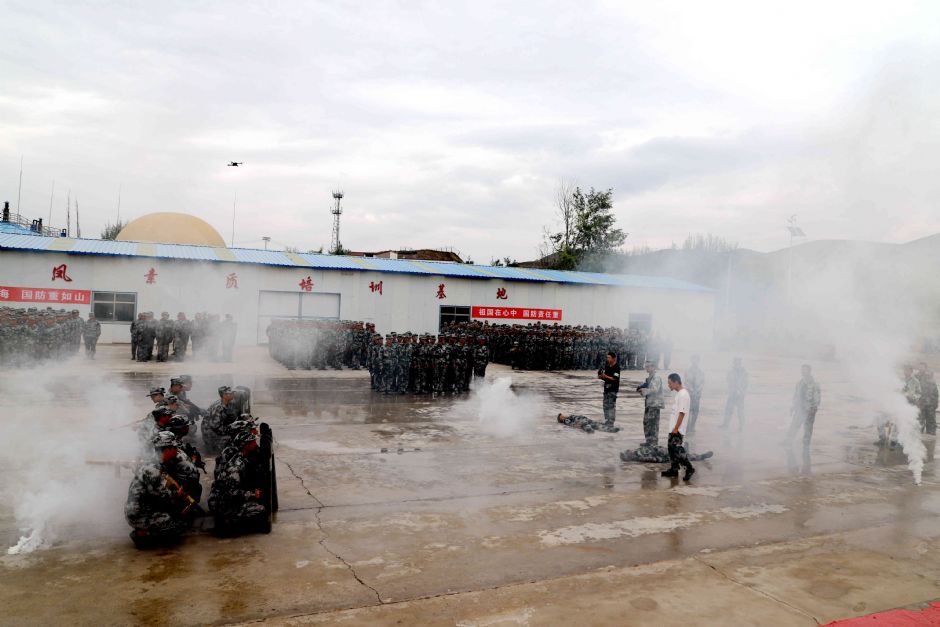 军训汇报演出开始,参训新生分成不同方阵开始进行分列式方阵、队列方阵、手语舞方队、军体拳方队、防暴处突方队、警棍盾牌方队、反恐演习等各项军训项目成果汇演。同学们身着迷彩服,喊着洪亮高昂的口号,迈着整齐划一的步伐,昂首阔步,英姿飒爽,铿锵有力,赢得了阵阵热烈的掌声和喝彩。