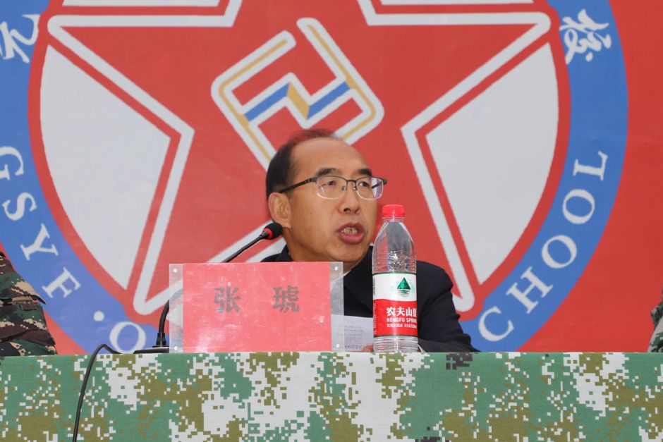 学院党支部书记、工会主席王琳检阅了军训队伍。
