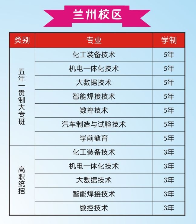 我院学生可通过以下途径获取国家承认的本科教育学历:【普通专升本】我院学生可在应届毕业生当年报名参加甘肃省教育考试院统一组织的普通专升本考试,成绩上线者,可被省内二本院校录取,全日制学习两年,可获得普通本科学历、学士学位。 【继续教育】学院积极拓展办学层次与规模,依托学校资源与兰州大学、兰州理工大学、兰州交通大学、兰州财经大学、甘肃政法大学合作,开展了函授专升本继续教育及高职在校生“专接本”自考本科教育。 【就业】学院就业以“数量就业、质量就业、稳定就业”为原则,积极开展“订单培养、顶岗实习、工学结合”的校企合作人才培养模式,先后与省内企、事业单位和西部地区、长江三角、珠江三角、关中—天水经济区以及新疆等地的300多家用人单位签订了定向就业协议,每年定期举办毕业生“双选会”,就业率连年保持在90%左右。 招生专业及计划